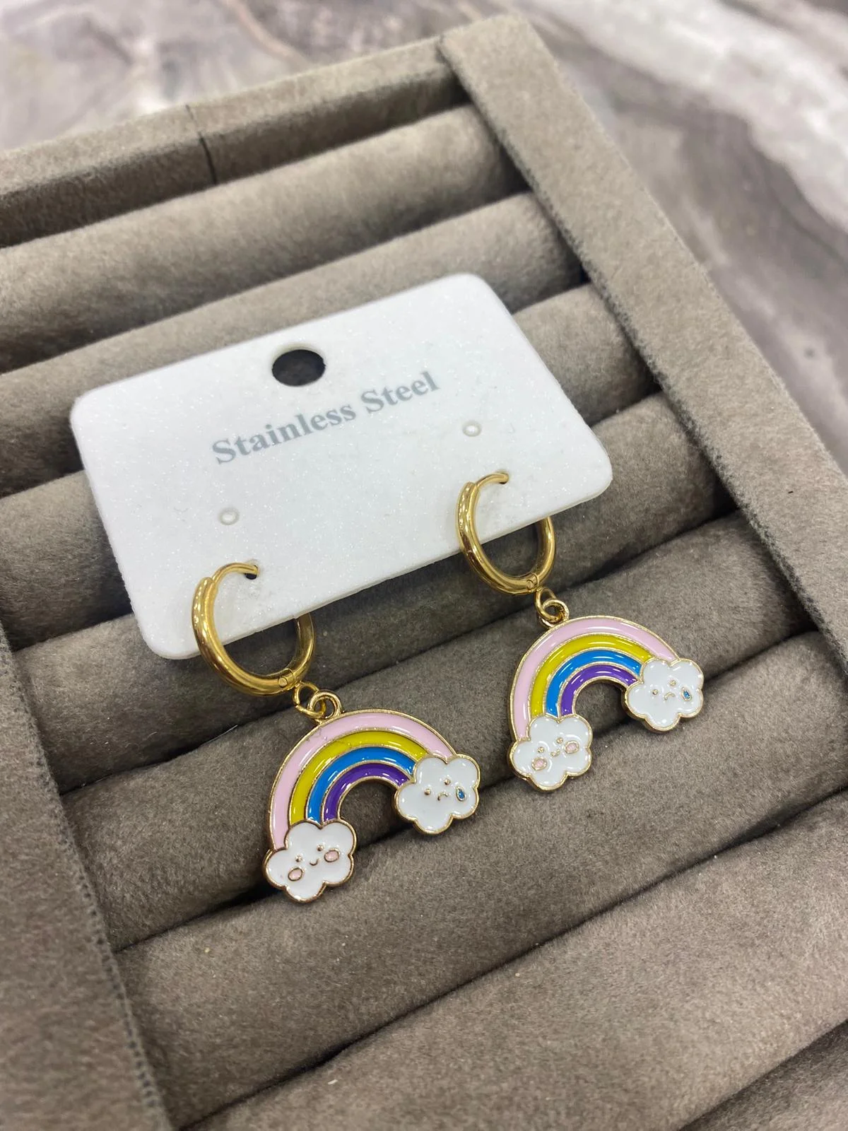 - Altın Renk Gökkuşağı Figürlü Küpe