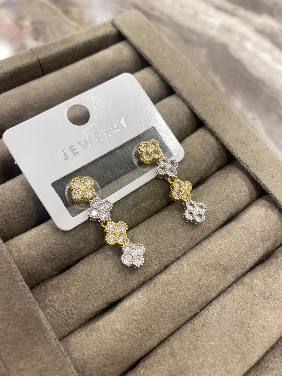 - Altın Renk & Gümüş Detaylı Taşlı Çiçek Küpe