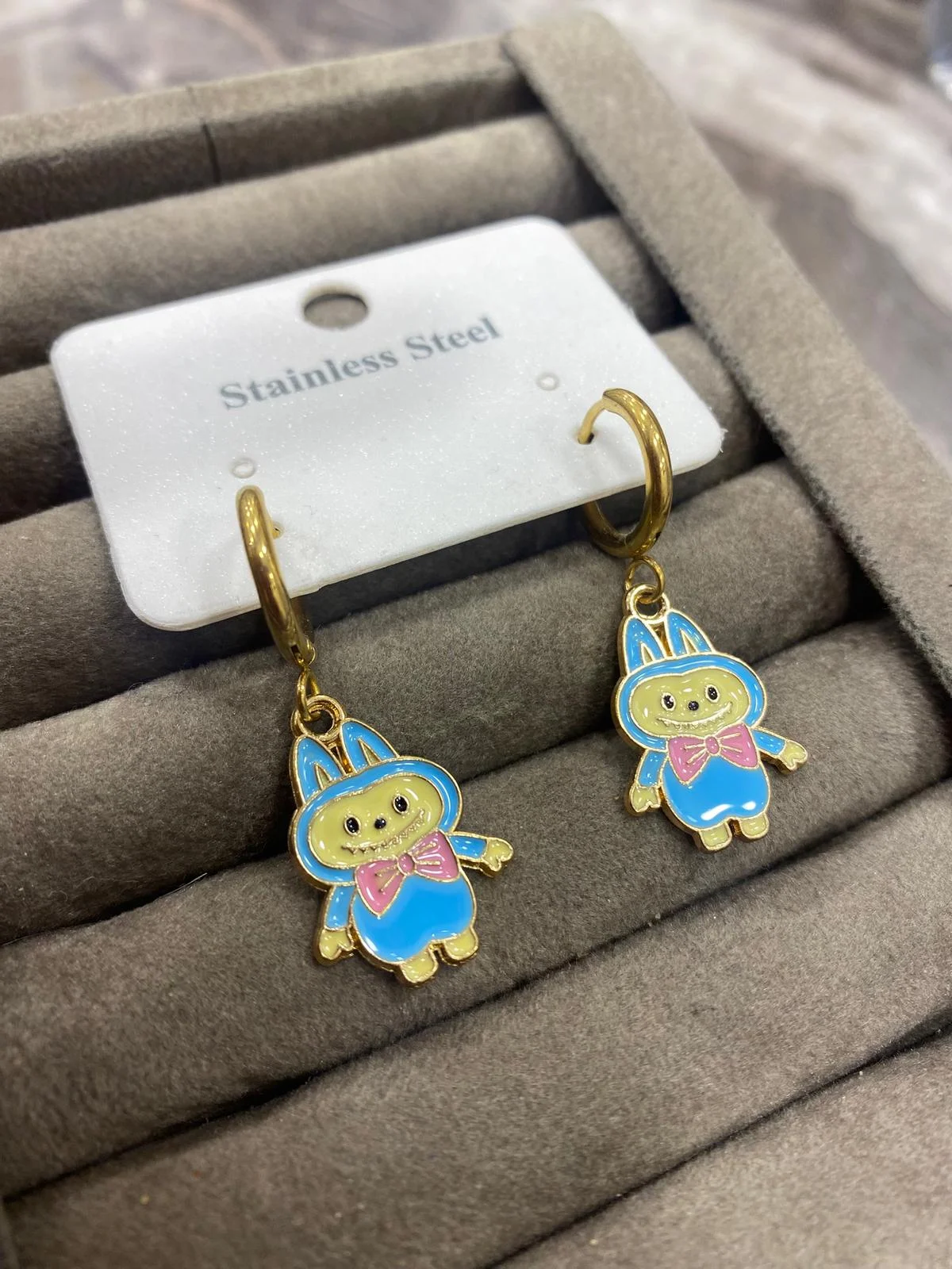 Canlı mavi renkli sevimli figür detayıyla tasarlanan bu altın renk küpe, enerjik ve tatlı bir stil oluşturmak isteyenler için mükemmel bir seçimdir. Paslanmaz çelik yapısı sayesinde kararmaz, uzun süre dayanıklılığını ve parlaklığını korur. Hem günlük kullanımda hem de hediye olarak ideal olan bu eğlenceli model, genç ve dinamik bir görünüm kazandırır.