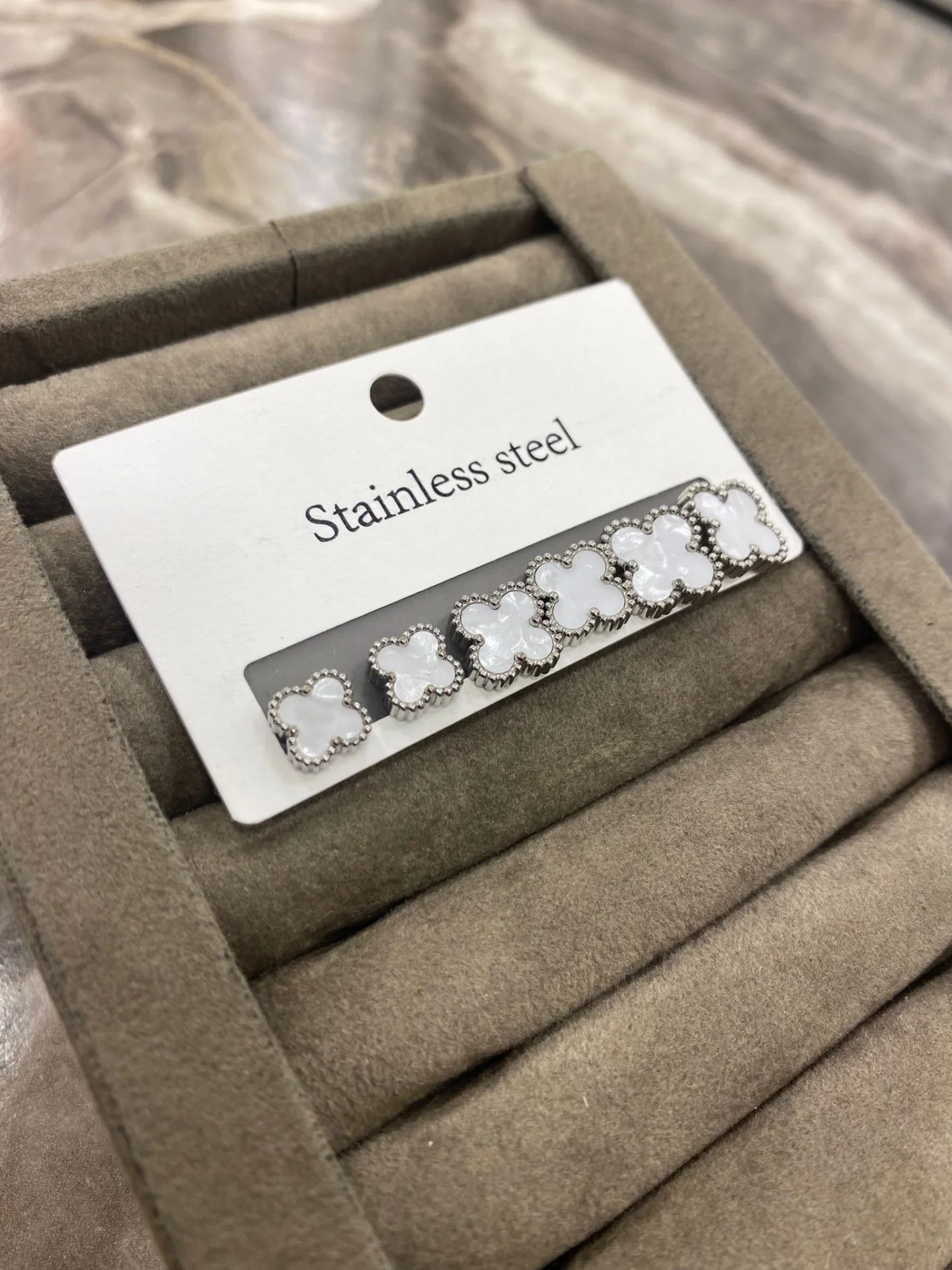 - Beyaz Dört Yapraklı Çelik Küpe Seti
