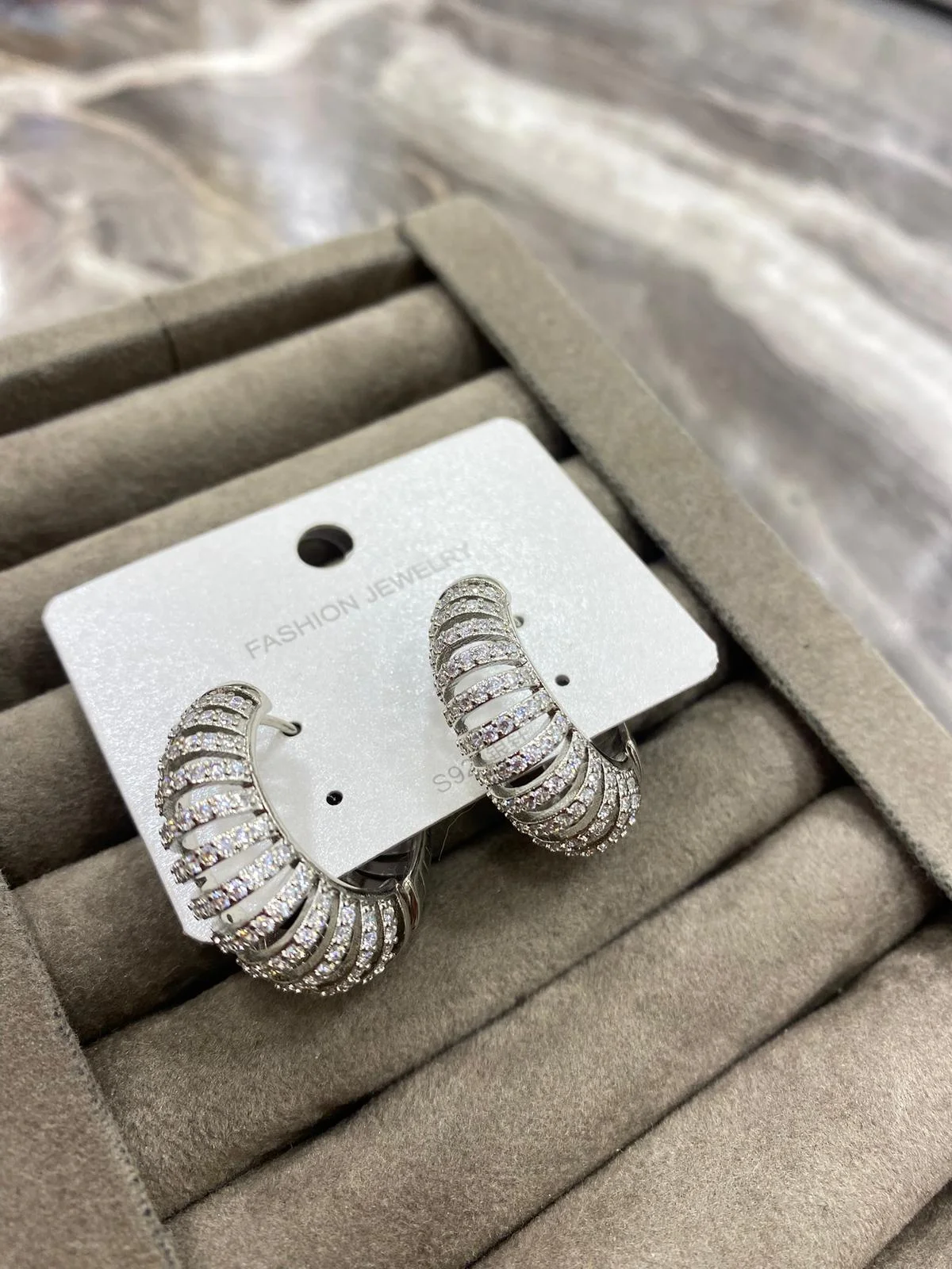 - Gümüş Renk Çok Sıralı Zirkon Taşlı Büyük Halka Küpe