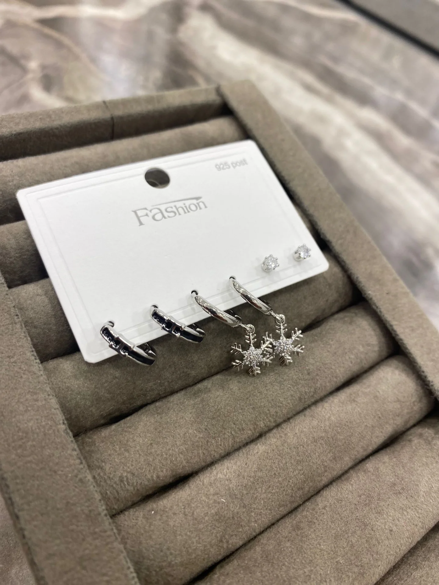 - Kar Tanesi Figürlü 3’lü Gümüş Küpe Seti