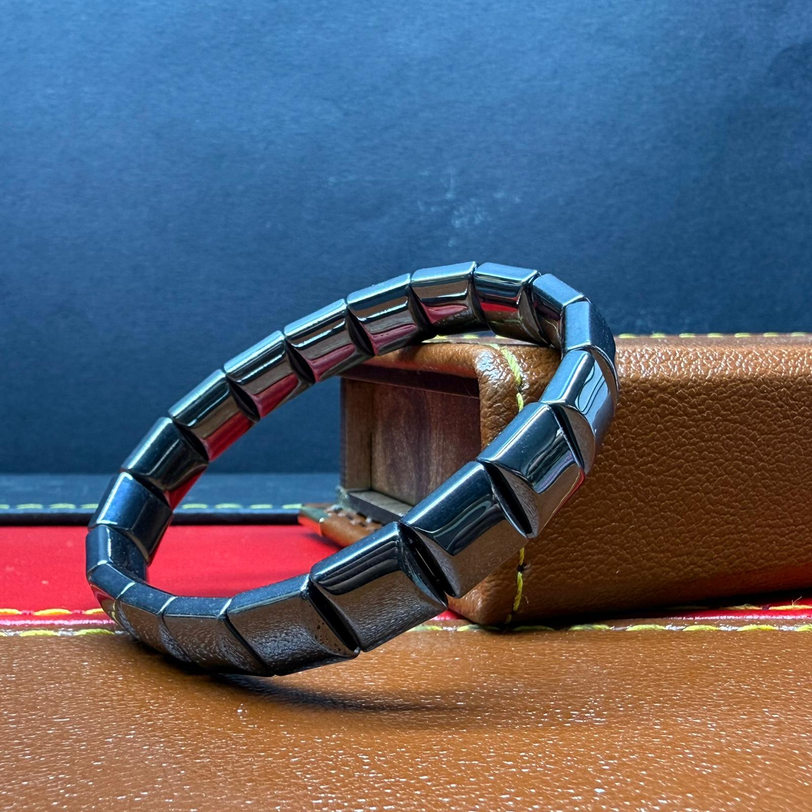 Kare kesim hematit boncuklardan özenle tasarlanmış bu bileklik, modern ve minimal çizgileriyle tarzınıza zarif bir dokunuş katıyor. Gümüş renkli detayları sayesinde şıklığınıza şıklık katan ürün, doğal taşın mistik enerjisini de taşır. Hematit, negatif enerjiyi uzaklaştırdığı ve koruyucu etkisiyle bilinir. Günlük hayatta rahatlıkla kullanabileceğiniz bu bileklik, hem erkek hem kadın kombinlerine uyum sağlar. Ahşap kutusunda özel olarak paketlenmiş, sevdiklerinize hediye etmek için de mükemmel bir seçim.
