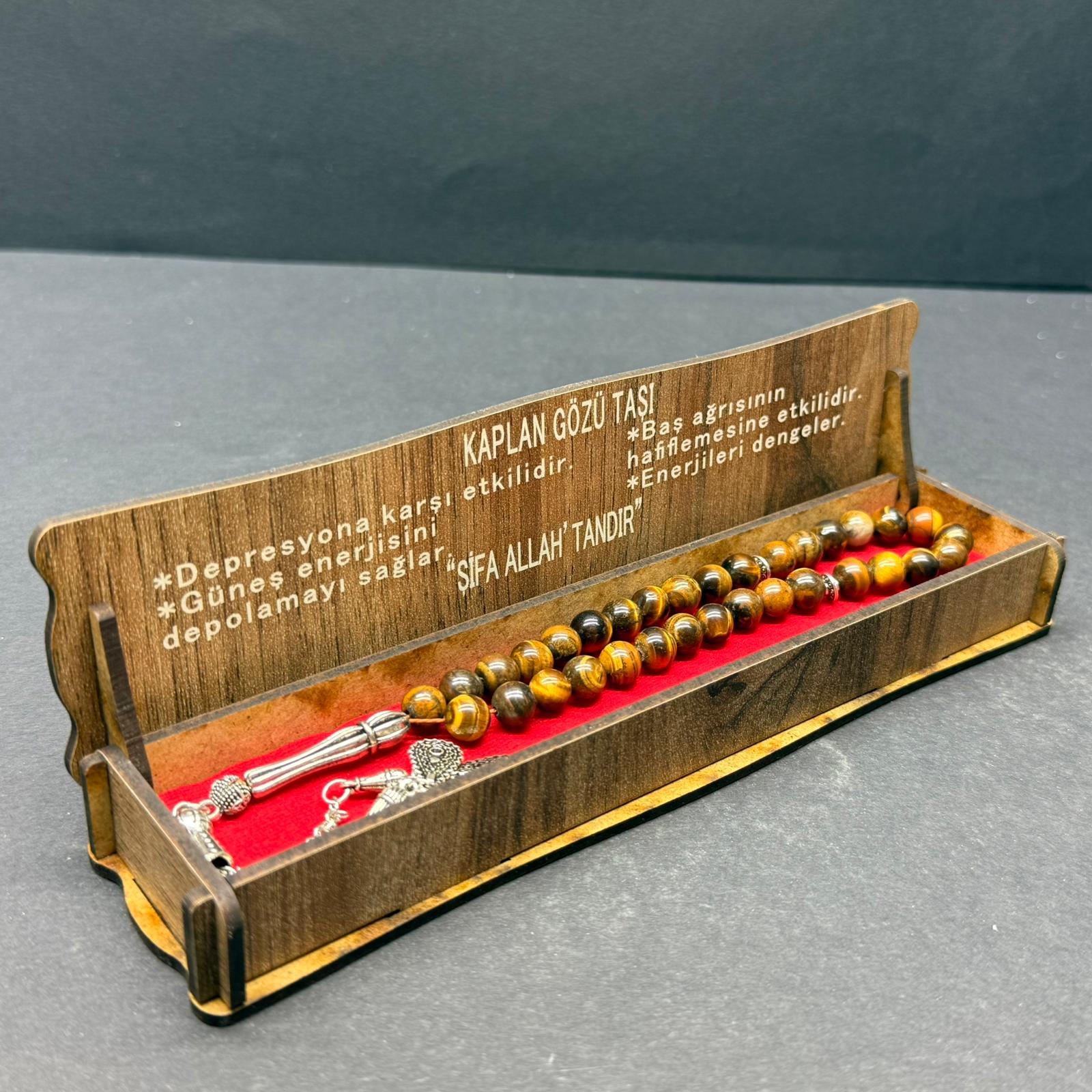 Özel Ahşap Kutulu 33’lü Kaplan Gözü Taşı Tesbih