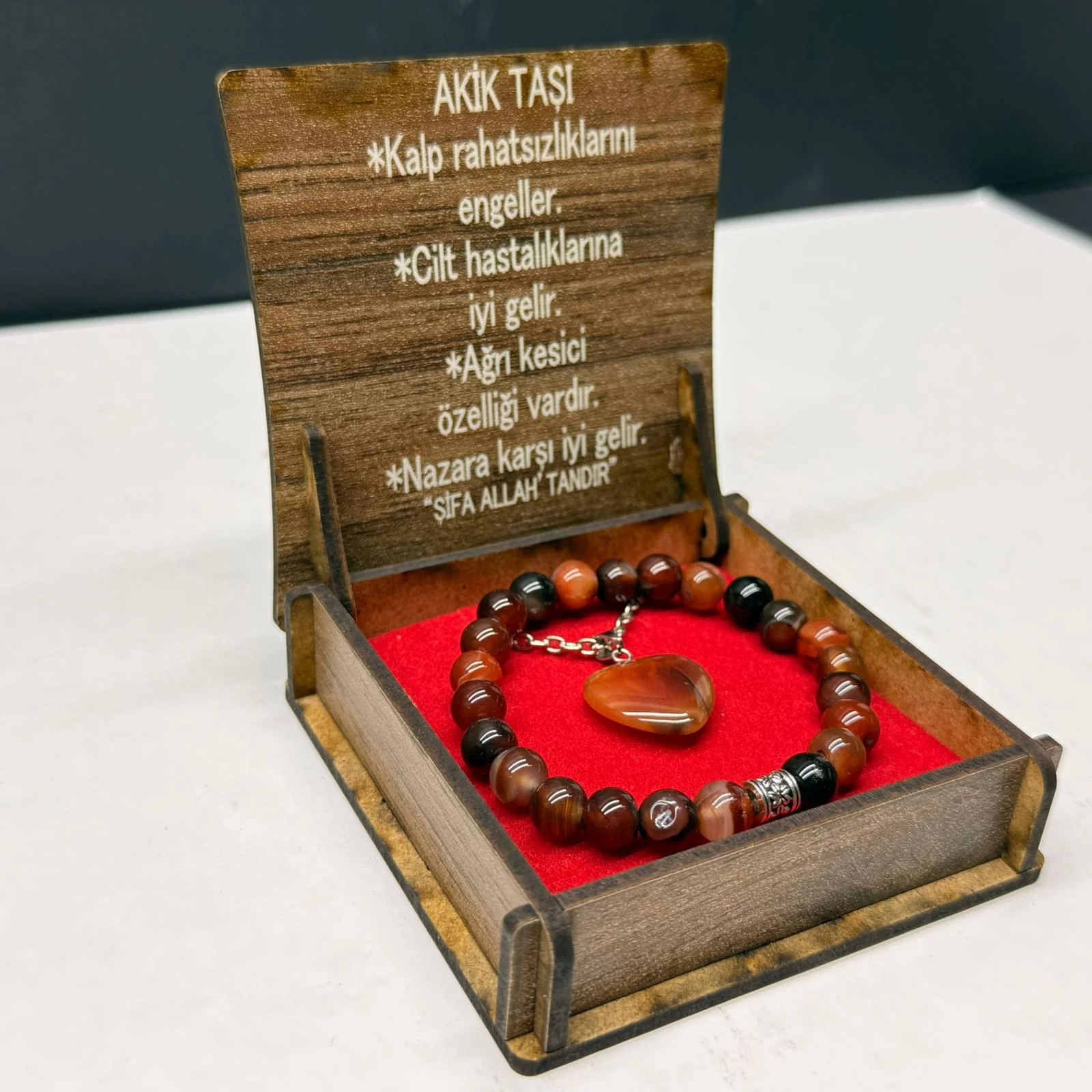 Doğal renk geçişleri ve bantlı desenleriyle tanınan Akik, yüzyıllardır koruyucu ve dengeleyici bir taş olarak kullanılmıştır. Farklı renk tonlarında bulunur ve her biri farklı enerjiler taşır.