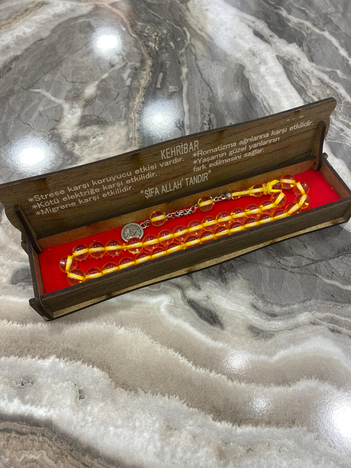- Özel Ahşap Kutulu Kehribar Tesbih