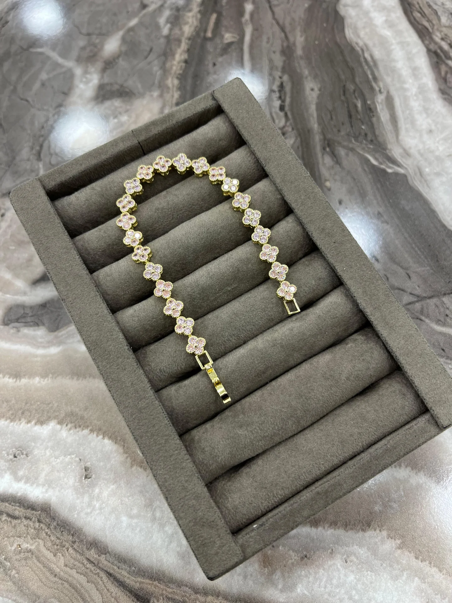 Pembe Çiçek Model Taş Detaylı Altın Renk Çelik Bileklik