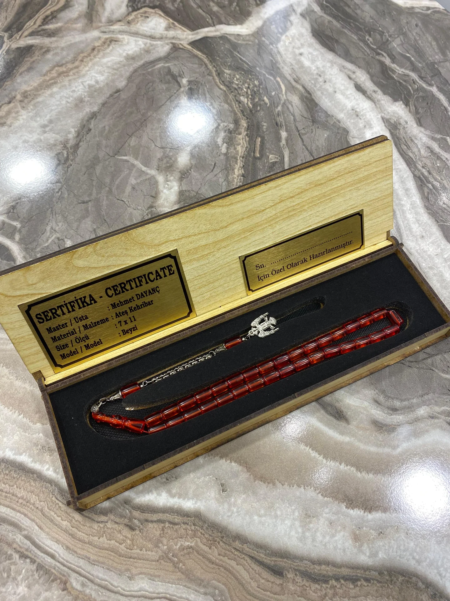 - Sertifikalı Usta İşçilikli Kehribar Tesbih – Özel Kutusunda