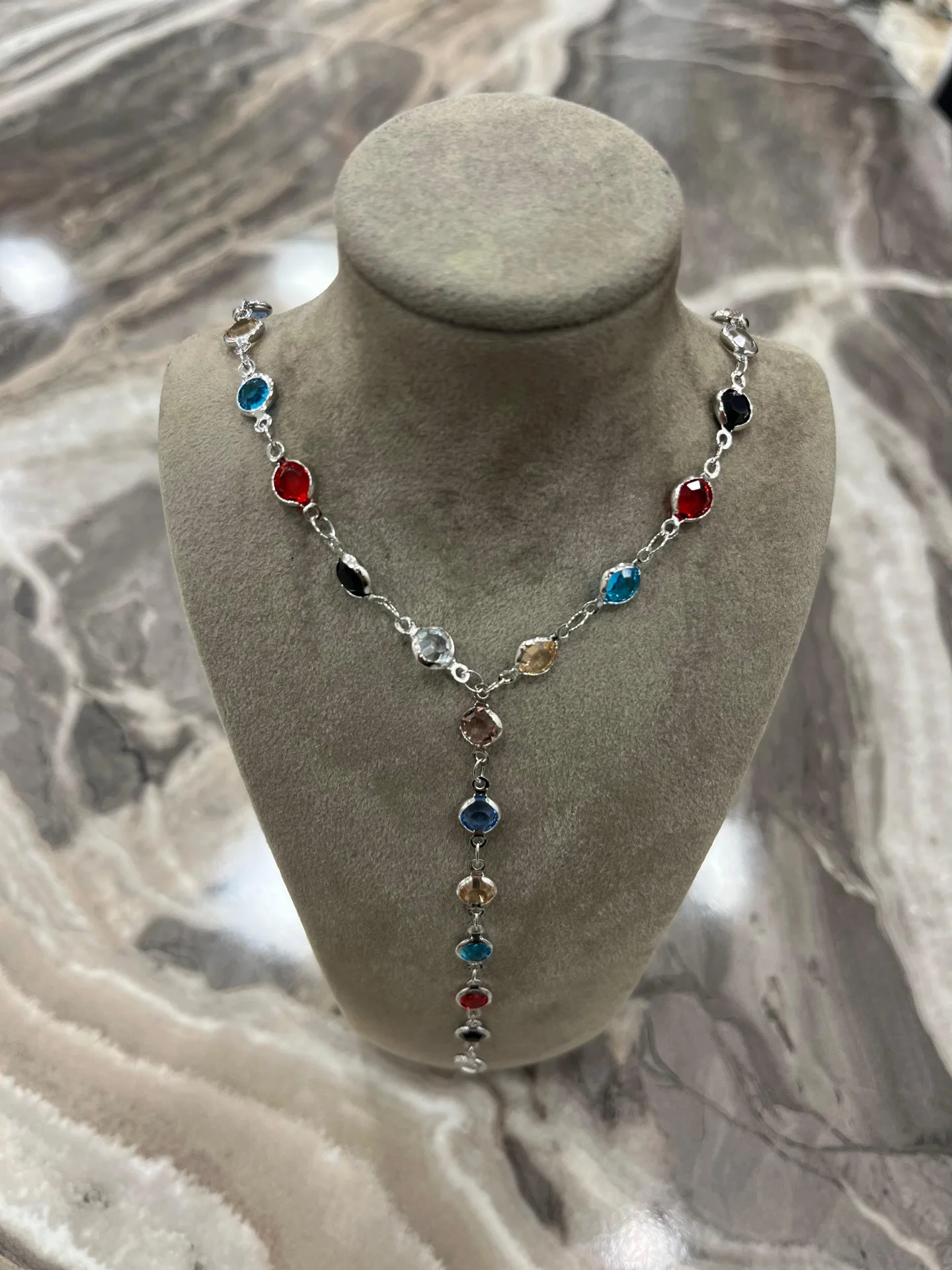 Gümüş Renk Çoklu Taşlı Çelik Kolye