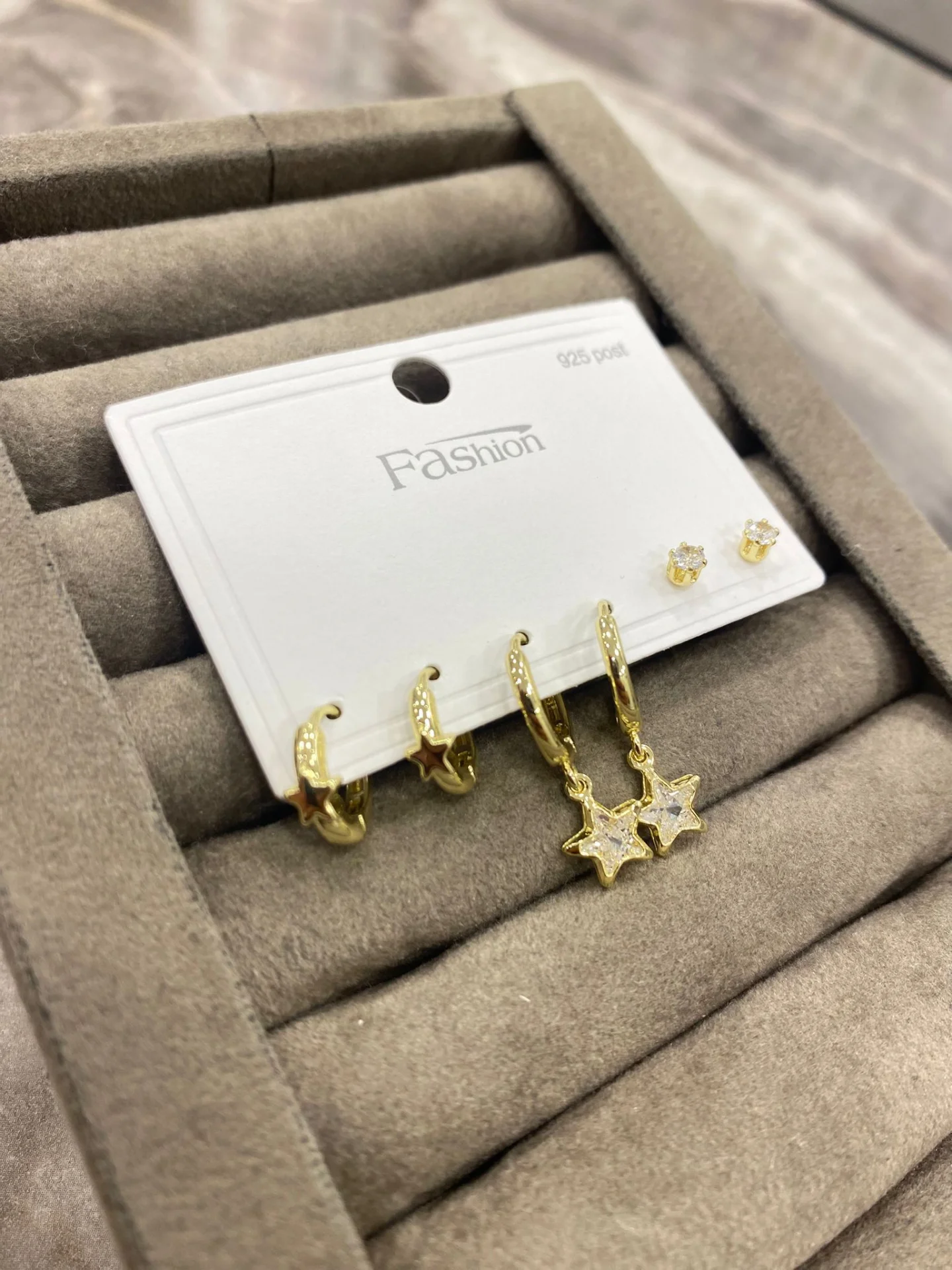 - Yıldız Detaylı 3’lü Küpe Seti – Gold